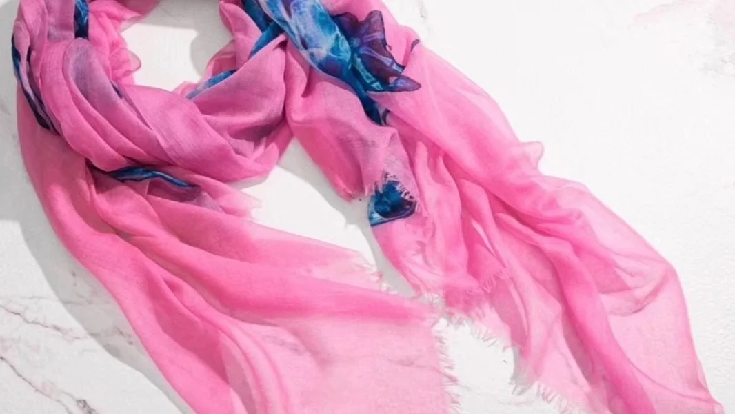 He works with several contemporary artists to print their unique creations on lightweight cashmere scarves. His current stable of artists includes: